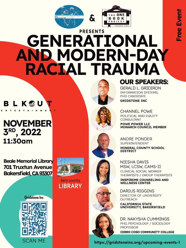 Join us November 3rd, 2022, as we discuss Generational and Modern-Day Racial Trauma. Our goal is to positively impact and educate the community on traumas suffered within the black community.